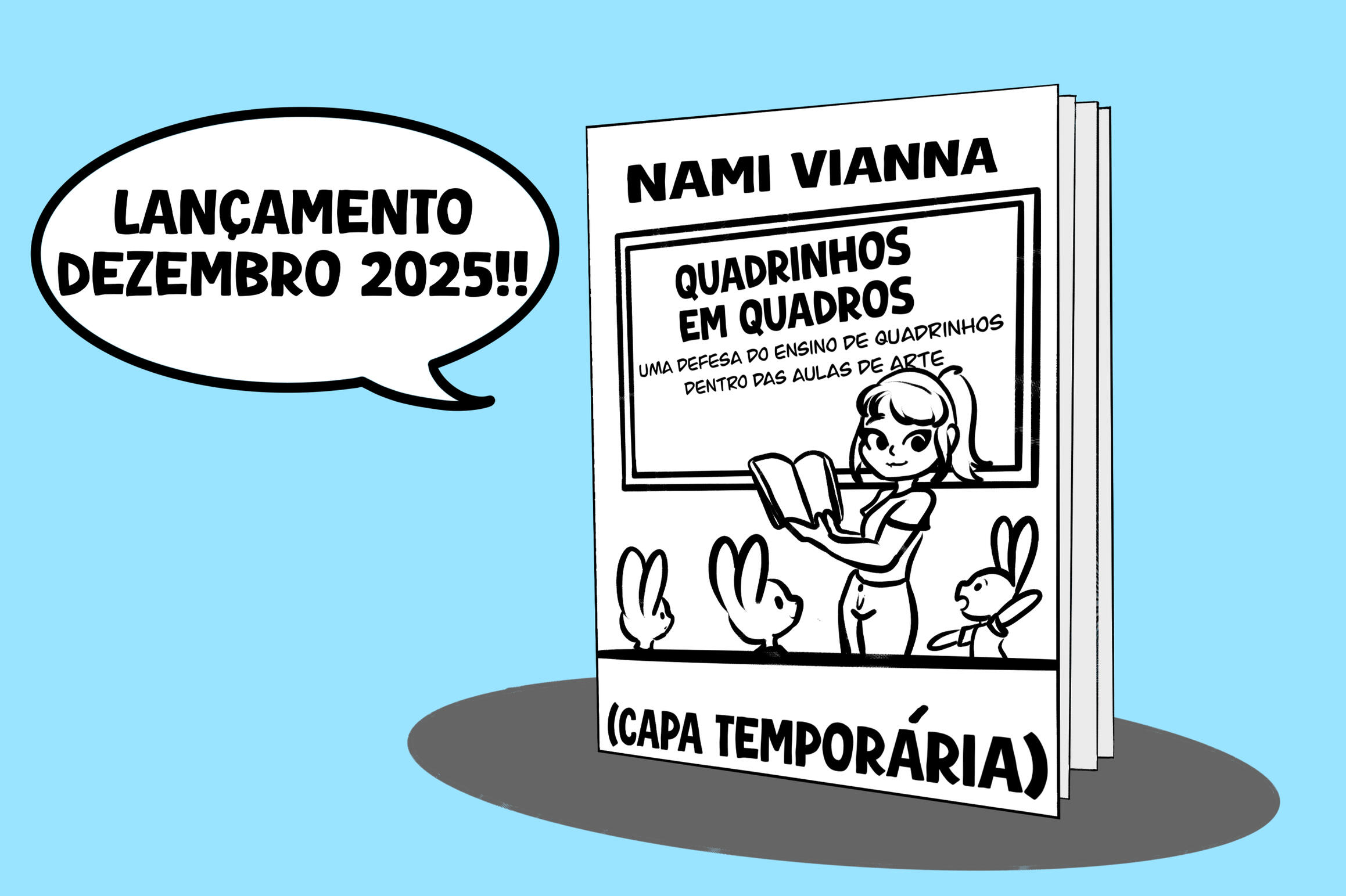 Publicação física da minha tese de conclusão de curso. É um mix de textos acadêmicos que defendem o ensino de quadrinhos dentro das aulas de arte, tirinhas sobre o uso do quadrinhos dentro das escolas e planos de aula aplicáveis para diferentes faixas etárias.